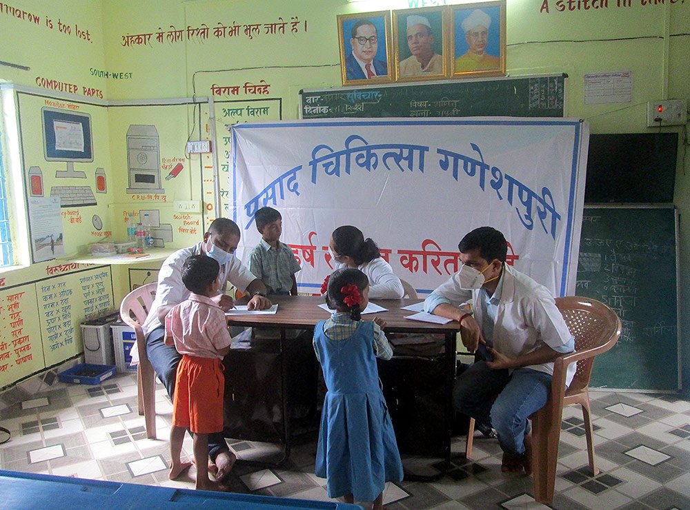 Twice a year, PRASAD Chikitsa runs Health Camps at schools in villages across the region to assess children’s health with a physical examination, dental checkup, vision screening, and distribution of medicine and vitamins as needed. The Camps take place in the monsoon season when chances of skin and respiratory infection are higher. Medical staff see approximately 2,000 students annually.